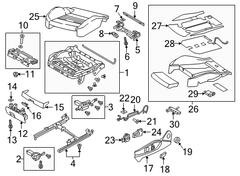 Part Notes: Sedan/Wagon, Manual Seat, Passenger Side;Sedan/Wagon, Seat Back Components, Power Seat